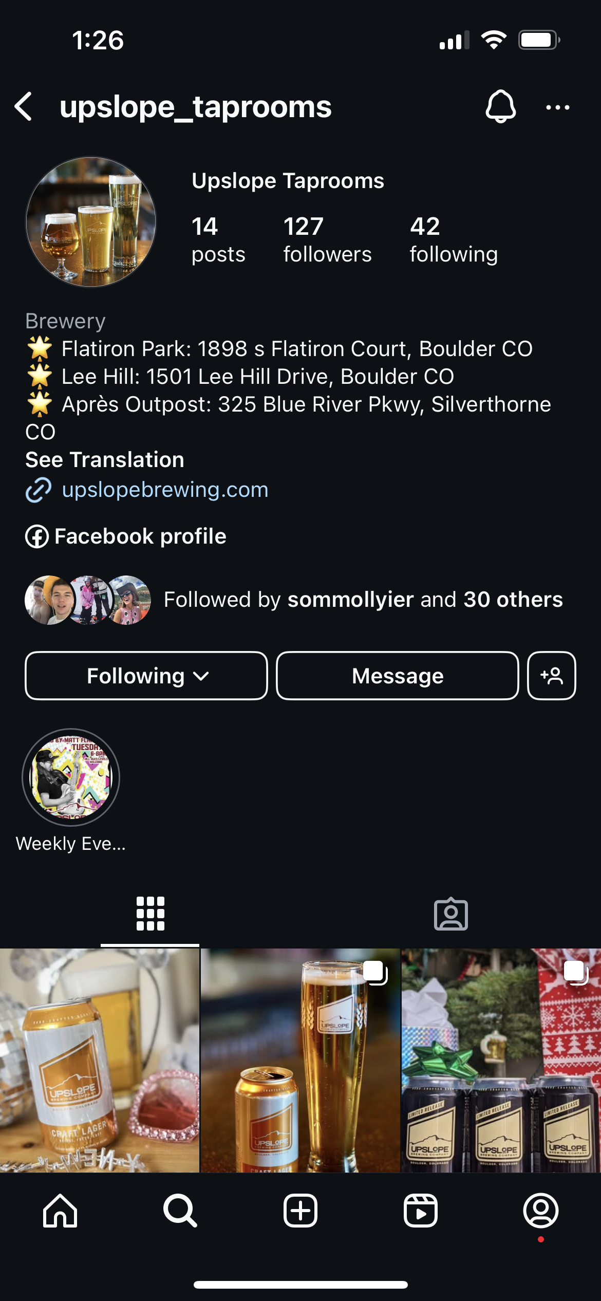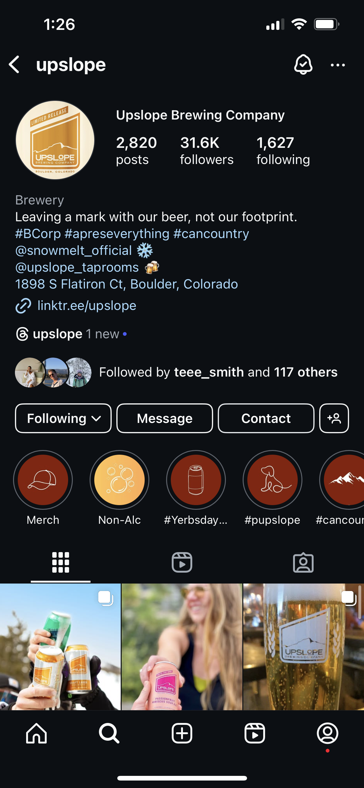 This is the Upslope Brewing Company Instagram Page. I grew this page by 6k followers in my time at Upslope.