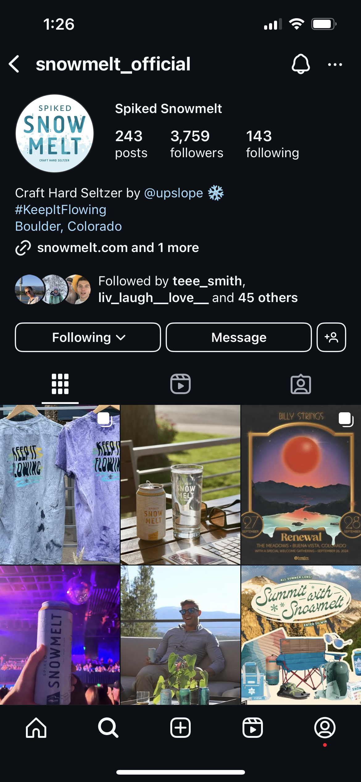 This is the Spiked Snowmelt Instagram Page. This page highlights the seltzer brand that is part of Upslope.